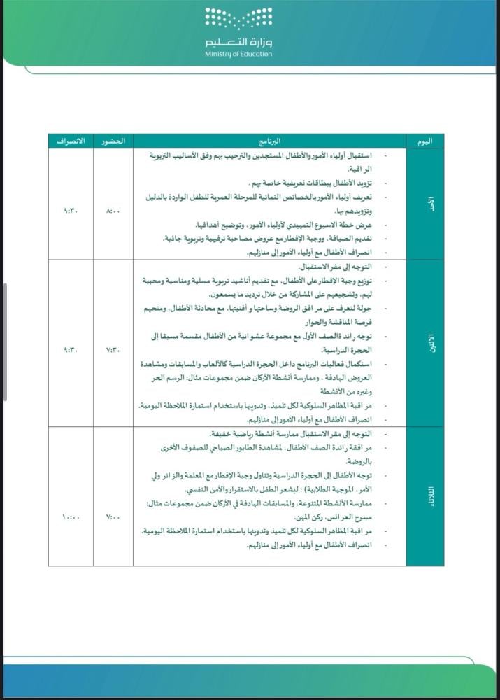 ✅ خطة زمنية لاستقبال وتوديع الأطفال.